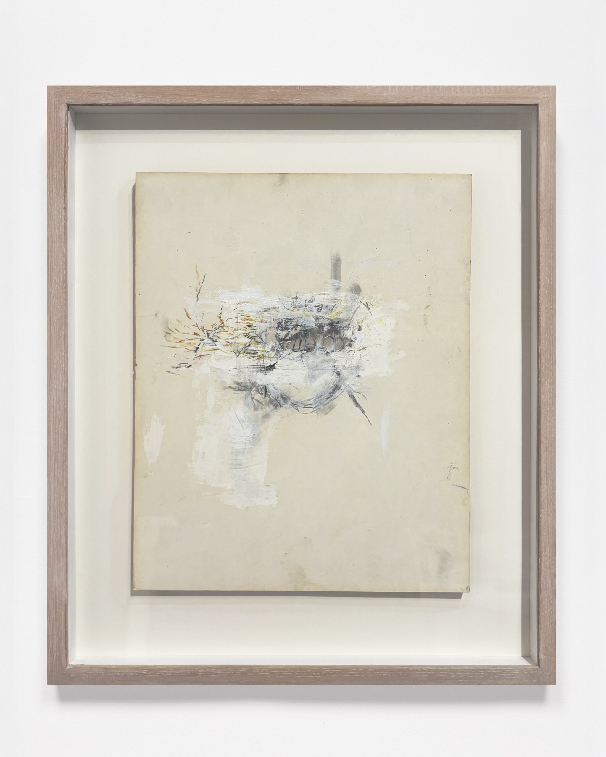 Drawn from the John Brown Estate and complemented by exceptional works consigned by long-standing patrons, this exhibition brings together a collection of the most compelling paintings remaining in Brown’s oeuvre. Spanning intimate 8-inch panels to monumental canvases over twelve feet wide, the works reveal the full breadth of his singular, archaeological process: painstaking layers of oil applied to wood and then scraped away, built up and excavated until image and meaning emerge. Often rooted in the human figure, architecture, and collected ephemera, Brown’s compositions hover between representation and abstraction, their weathered surfaces bearing the visible history of their making. Dense with texture, shadow, and luminous colour, these paintings embody the visceral, bodily act of painting that defined his practice, culminating in what Brown called “the shock of recognition,” the moment when the work finally declared itself complete.