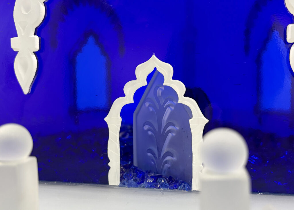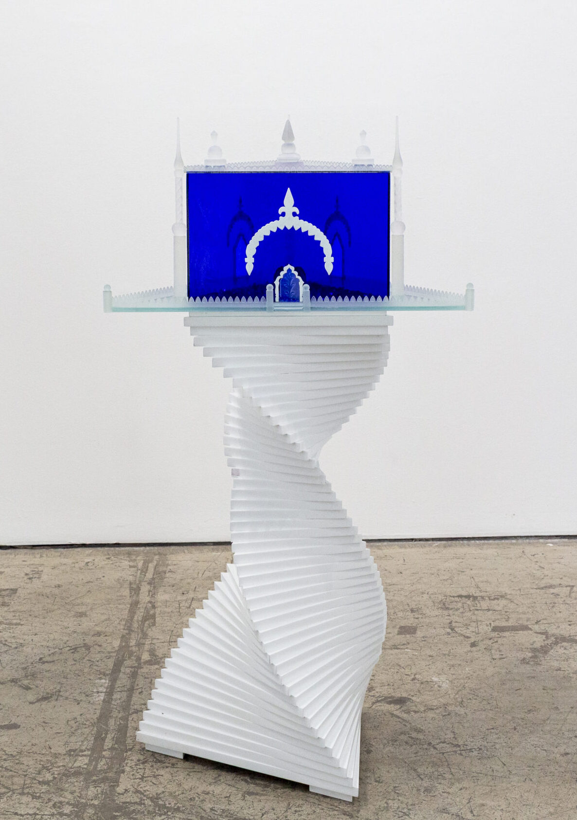 Tim Whitencobalt blue glass, crystal clear glass, composition wood 53" x 28" x 24.25"