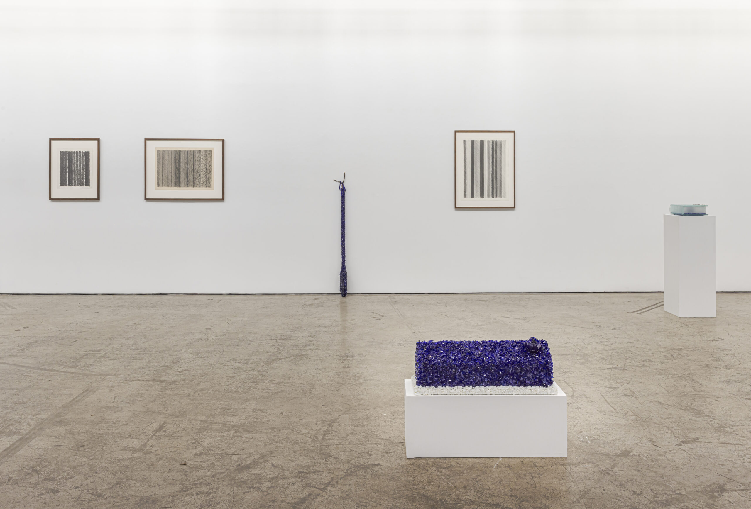 Tim Whitenresourced crushed cobalt blue glass, wood, gel medium 45" x 18" x 18" / 7.5" x 17.5" (bowl)